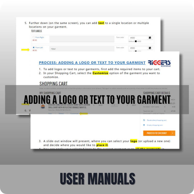 How to add logo or text to your garment on Riggers Online Ordering Portal